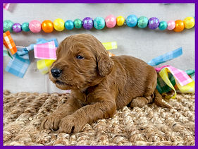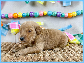 We have had a very special delivery! Help us welcome Chi Chi's beautiful standard goldendoodle babies! These babies will be ready to join their new families around the 3rd week of April. They are expected to be in the 50-60 pound range as adults with non-shedding coats. We have 2 little girls and 8 little boys--you don't want to miss out on these cuties! We are SO excited to watch these littles grow. Message us today for more info.